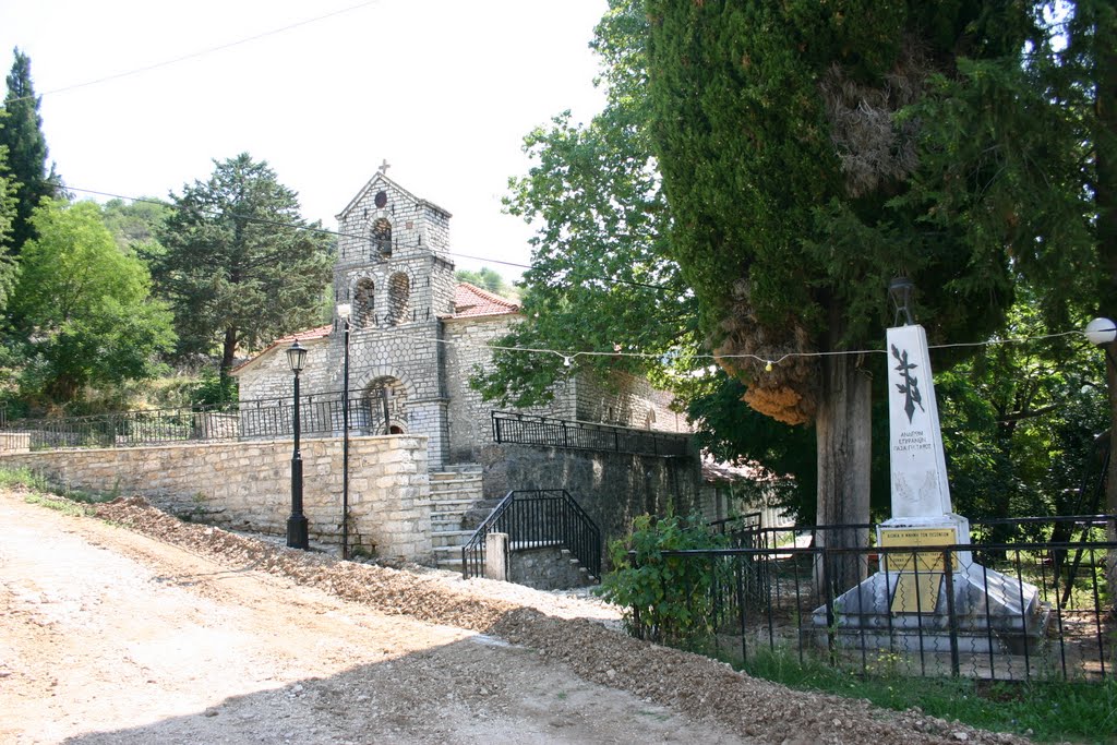 Ακριβώς δίπλα από το μνημείο αρχίζει ο τσιμεντόδρομος που ανηφορίζει προς τη πάνω πλευρά του χωριού και τον οποίο, για λίγα μέτρα ακολουθούμε. Ύστερα από το πρώτο «ζικ ζακ» του δρόμου, στρίψαμε δεξιά και μπήκαμε στο μονοπάτι που οδηγεί προς τη δεξαμενή του χωριού η οποία βρίσκεται μόλις 500 μέτρα πιο πάνω από το σημείο της εκκίνησης μας.